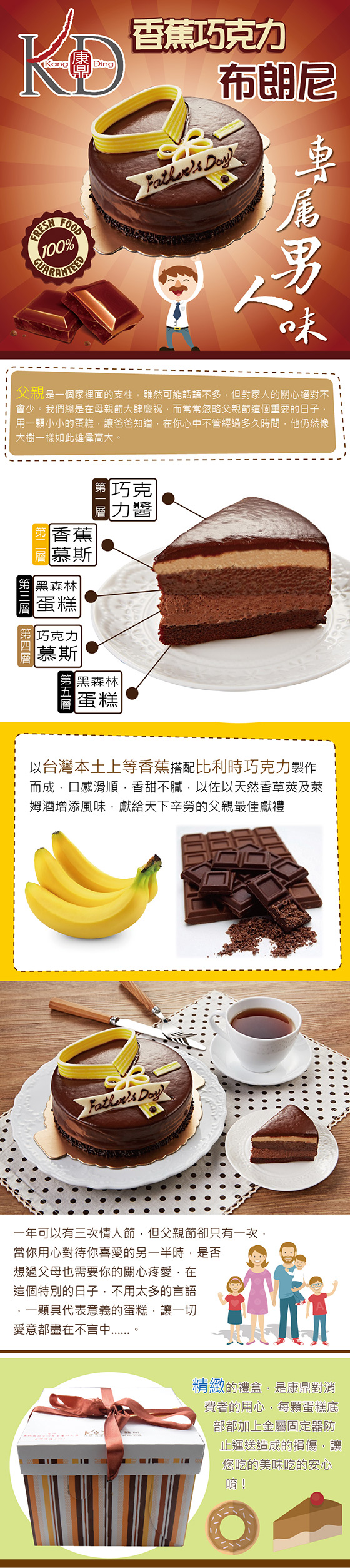 母親節媽媽有蛋糕,父親節怎麼可以沒有!台灣本土香蕉x比利時巧克力,層層堆疊香濃不膩,表達對父親的愛就趁現在!